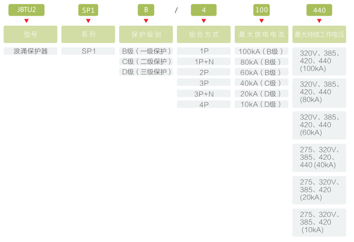 按最大沖擊電流Iimp(10/350us)分為:15kA、25kA;